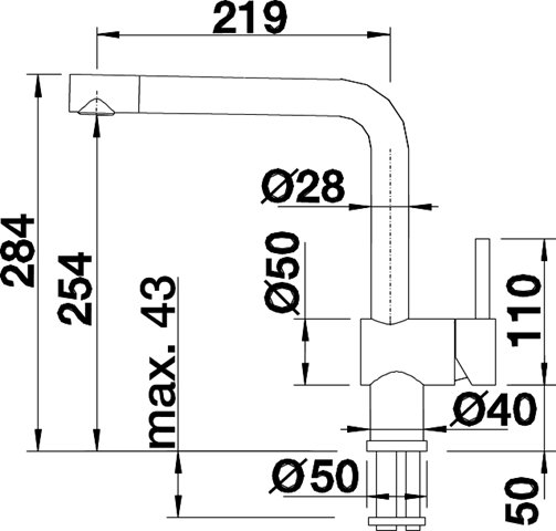 • Høj tud gør det let at fylde høje genstande som vaser og kander