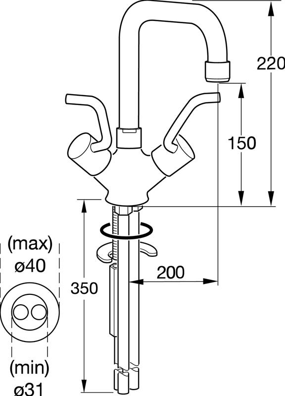 Børma Handi køkkenbatteri B7549AA. Med U-tud og keramiske ventiloverdele  |