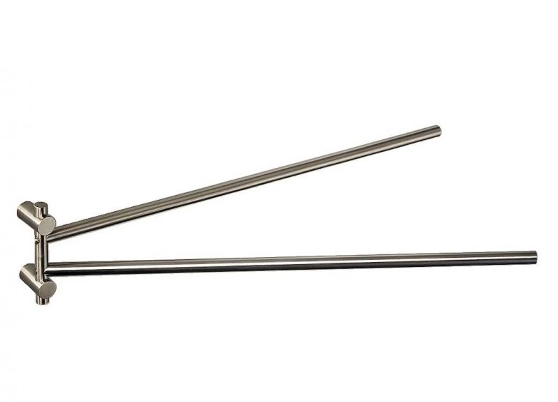 Svingbar dobbelt håndklædestang i rustfrit stål. Med 2 stænger der kan svinge uafhængigt af hinanden.