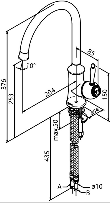 Damixa Tradition Køkkenbatteri m/høj tud - Messing