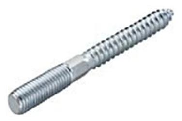Skrue med såvel metrisk som trægevind for montage af rørbøjler.