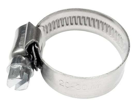 Slangebinder i 100 % rustfri stål (AISI 304). AISI 304 stål indeholder ca. 18 % krom og 10 % nikkel. Bånd bredde: 12 mm Skrue: 7 mm