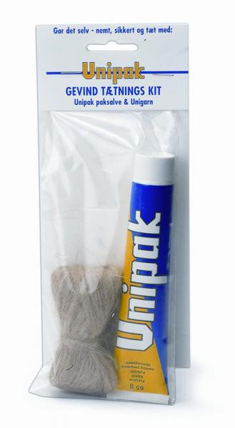 Gør det selv pakke til samling af gevindrør og fittings. UNIPAK paksalve er en grå, højviskos paksalve bestående af en forsæbning iblandet naturligt forekommende mineraler og viskositetsregulerende olier og vand. Samtlige indholdsstoffer er tilladt som tilsætningsstoffer til fødevarer og lign.  |