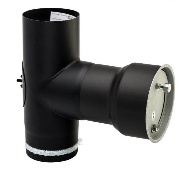 Metalbestos røgrør med trækstabilisator og renselem modsat trækstabilisator.