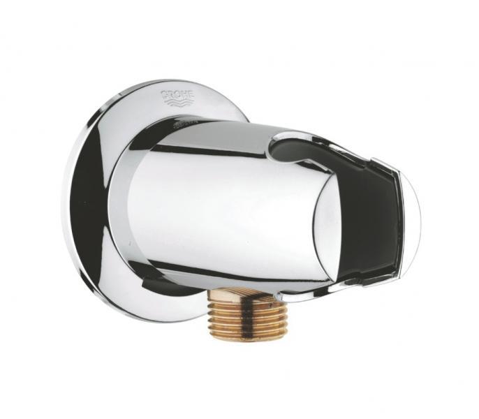 Outletvare til nedsat pris - Kun 1 stk. tilbage til outletpris Grohe Movario vægudtag dn 15 medholder Tilslutningsbøjnning til væg. Med håndbruserholder Med kontraventil. Grohe Long-Life Shine-krombelægning