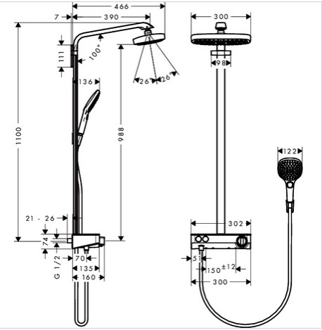Hansgrohe Raindance Select E 300 2jet ST Showerpipe EcoSmart