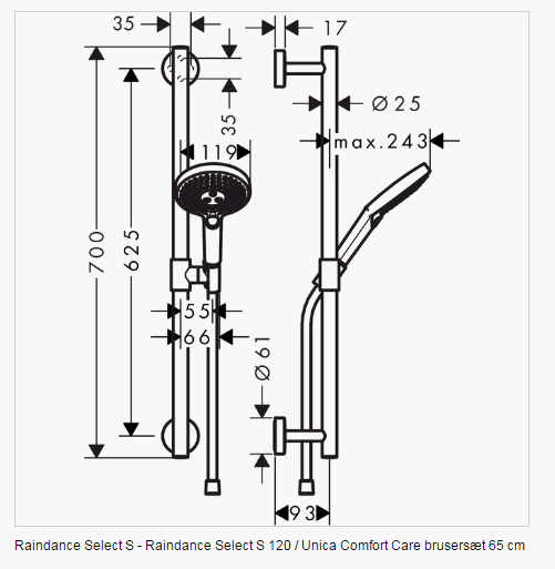 • Unica Comfort Care bruserstang 65 cm (26401000)