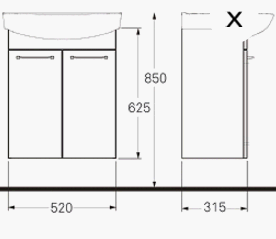 • Mål: H: 700 B: 570 D: 435 skabsdybde: 315 mm