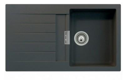 Køkkenvask med afløbsbakke. For nedfældning eller underlimning. Leverers med løftopventil og vandlås. Udskæringsmål: 850 x 480 mm.