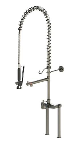 Kriss Classic Clean storkøkkenarmatur til bord - Rustfri stål Denne model har svingbar udløbstud med integreret keramisk åbne-/lukkefunktion, samt kvalitetshåndbruser med trykstødsdæmpende håndtag og en solid krog til at parkere håndbruseren i, når den ikke bruges. Armaturet er forsynet med 2-trins-vandsparekartouche, der gør det nemt at reducere vandforbruget, når det ønskes. Der medfølger kontraventiler. Byggehøjde: 1250 +/-50 mm.  |