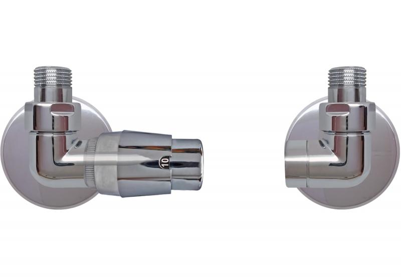 Beskrivelse af Kriss Corner NY returtermostatventilsæt - venstre - krom på vej.