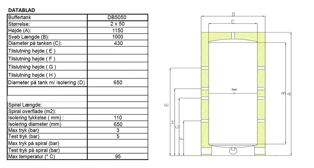Langå Dobbelt akkumuleringstank - 50+50 liter - Til varmepumper Dobbelt Buffertank/Akkumuleringstank med isolering.