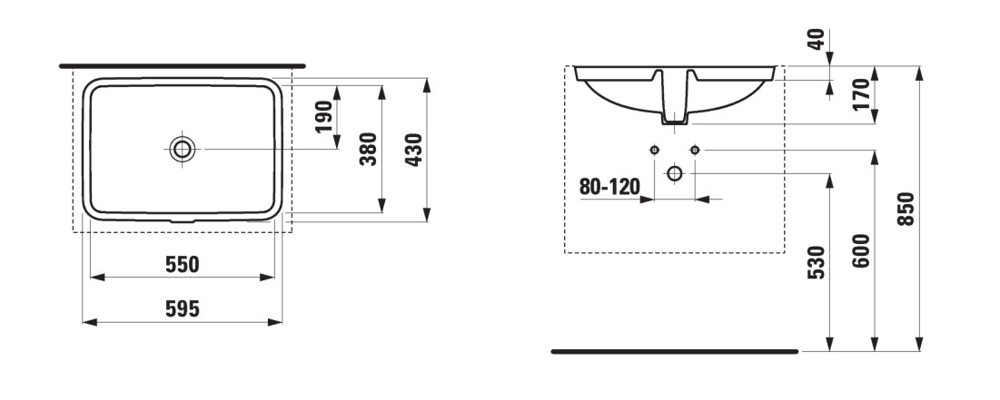 Laufen Pro S 55 håndvask t/underlimning - Med overløbLaufen Pro S 55 håndvask t/underlimning - Med overløb