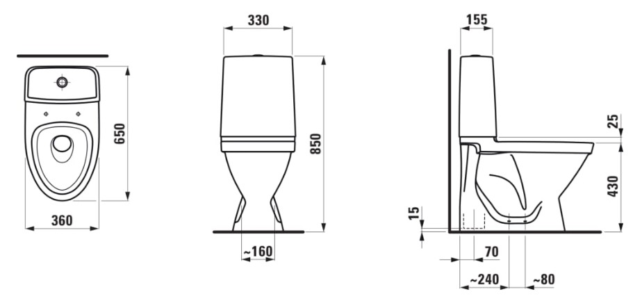 Som alle LAUFENs toiletter skyller den kondensfri cisterne, ved levering, med vandbesparende 3 og 4.5 liter. Det store skyl kan nemt justeres til 6 liter, hvis der er behov for den ekstra vandmængde. Alle LAUFENs toiletter har en standard siddehøjde på hele 43 cm.