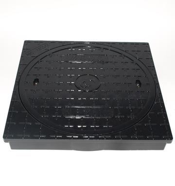 Glasfiberdæksel med firkantet karm i Ø600 mm