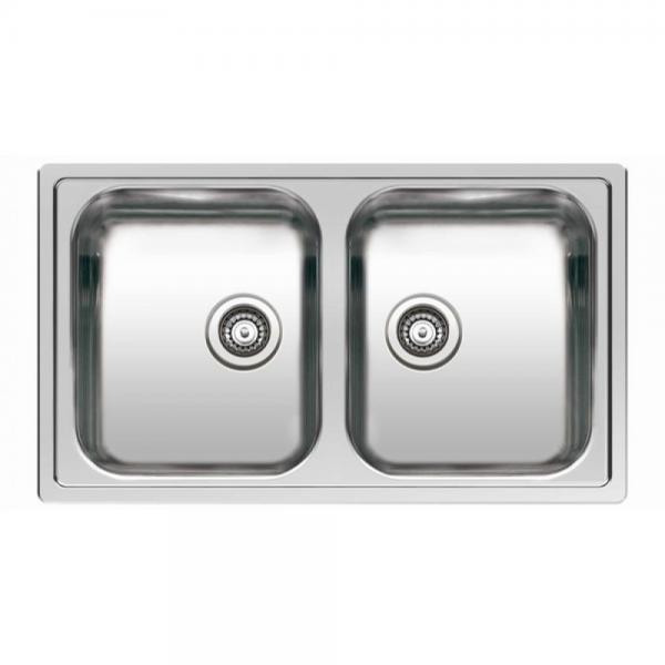 Rustfri dobbeltvask i stål. De indvendige runde hjørner giver et harmonisk design, ligeledes er de indvendige runde hjørner rengøringsvenlige.