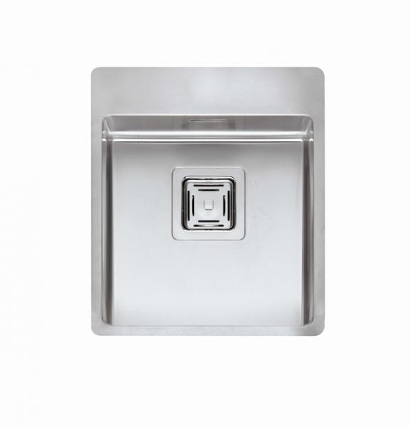 Rustfri stålvask, med hanehul, i moderne firkantet design.
