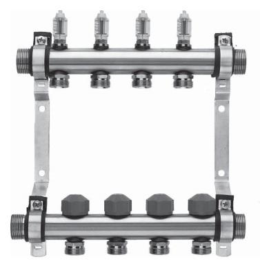 Roth gulvvarme fordelerrør med 4 kredse og med flowmåler