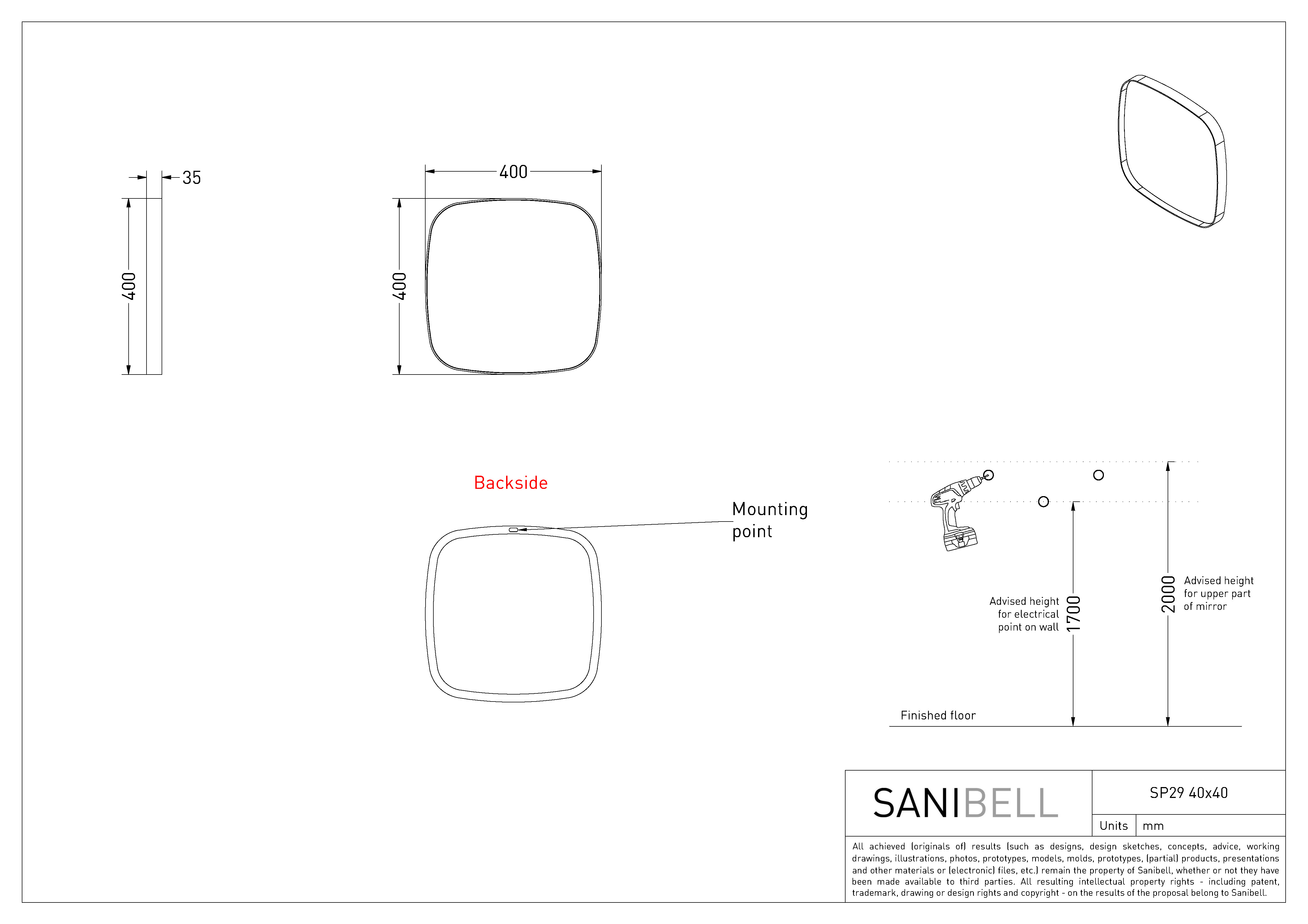Sanibell Ink SP29 superellipse spejl m/ramme 40 x 40 cm - Mat hvid Minimalistisk spejl med ramme, som forfra er helt slank, men fra siden træder frem fra spejlets profil. Formen er superellipse og dermed ikke helt rund, og ikke helt firkantet. Et spejl på badeværelset, i soveværelset eller i entréen er en alletiders måde at skabe liv og bryde de linjer der ellers ofte præger hjemmet. Kombiner eventuelt spejlet med elegante væglamper, som kan være med til at skabe atmosfære, godt arbejdslys og understrege indretningsstilen. Specifikationer: