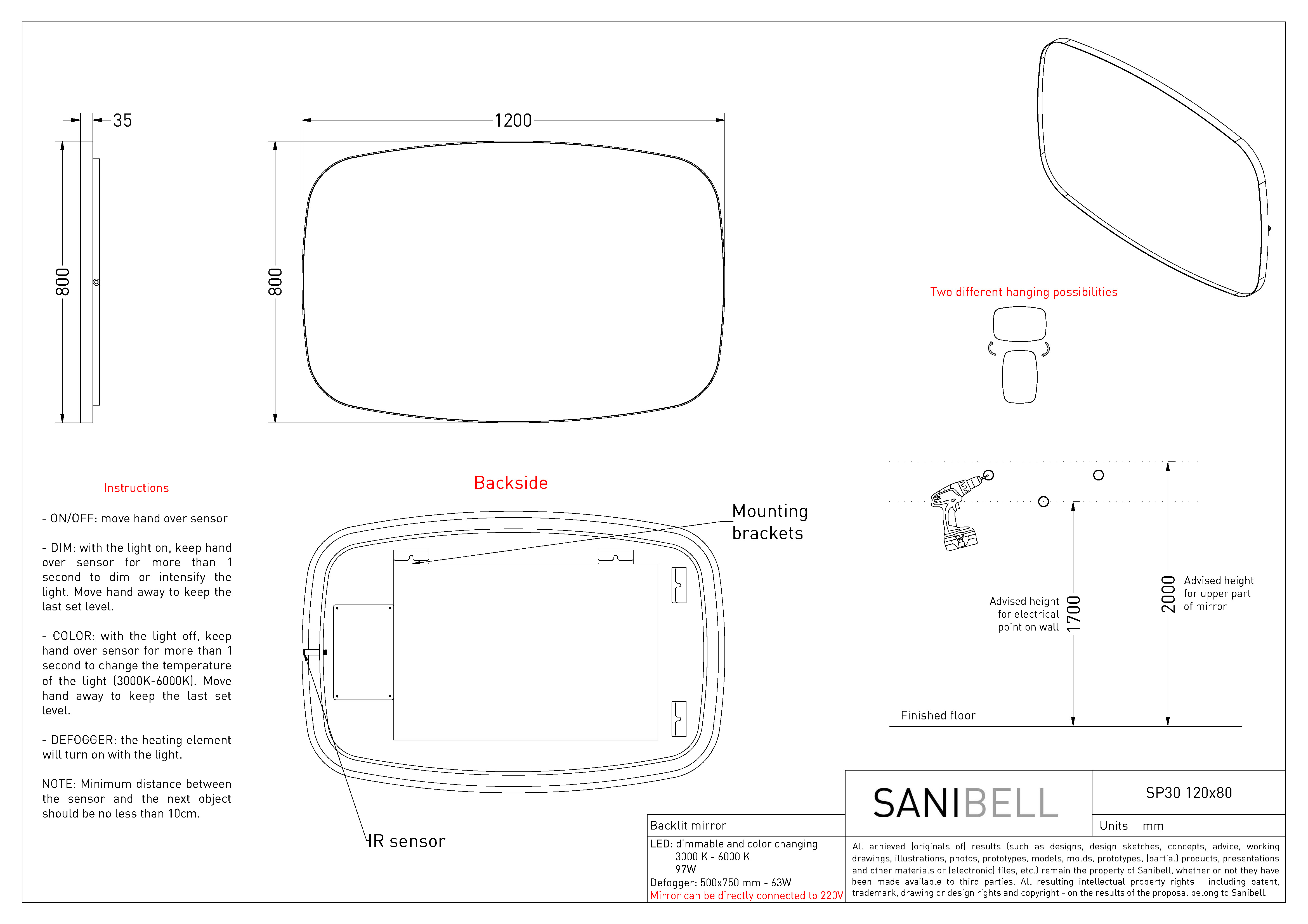 Udover backlight har spejlet også indbygget varmefelt, hvilket betyder at du kan nyde den luksuriøse oplevelse af et dugfrit spejl - selvom om du lige har taget et langt varmt bad.