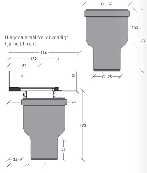 Udløbsdimension: ø75 mm