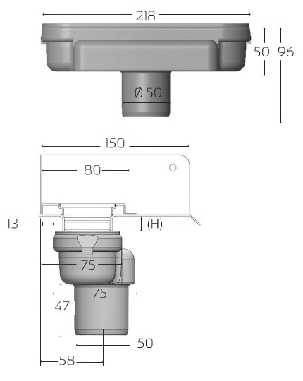 Lodret udløb i Ø 50 mm Ekskl. lugtspærre/vandlås Udløbshusene har ekstra lav indbygningshøjde og kan evt. kombineres med den VA-godkendte lugtspærre. Et låsebeslag sørger for at udløbshuset altid sidder fast til afløbsarmaturet i den helt rigtige position, og et par fødder i bunden af udløbshuset gør det muligt at fastgøre det til underlaget.  |