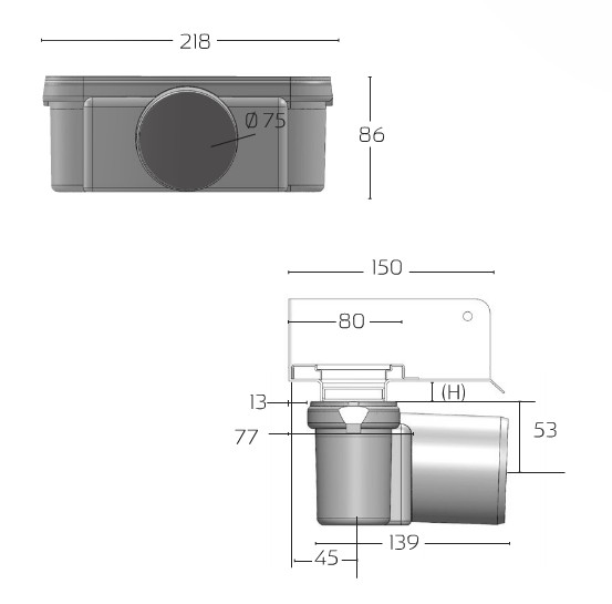 Unidrain udløbshus 75 mm vandret udløb m/vandlås