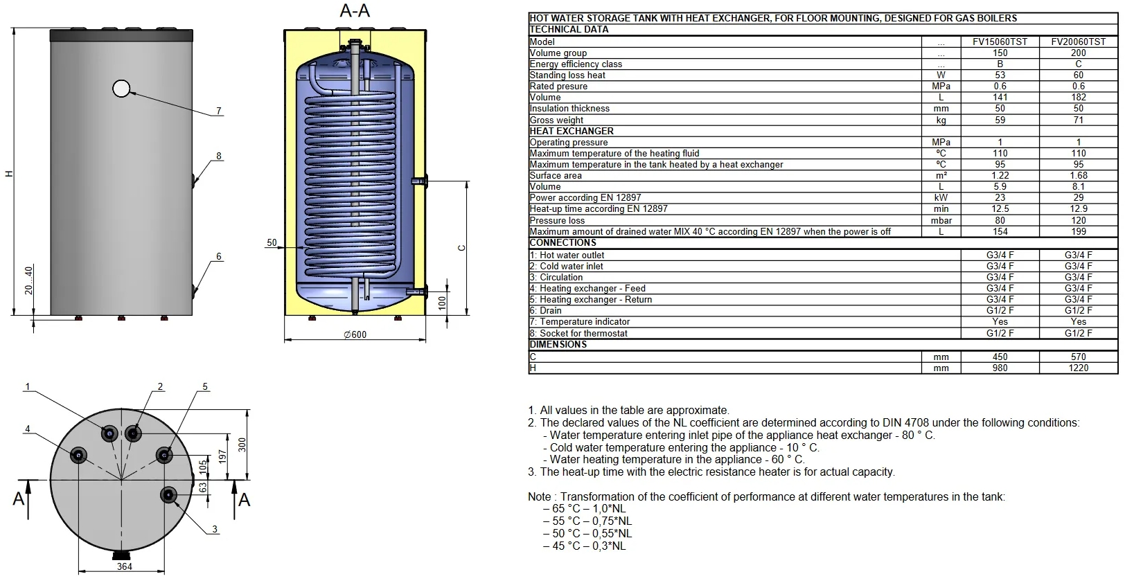 Varmtvandsbeholder - 150 L - Stor spiral - Til varmepumper