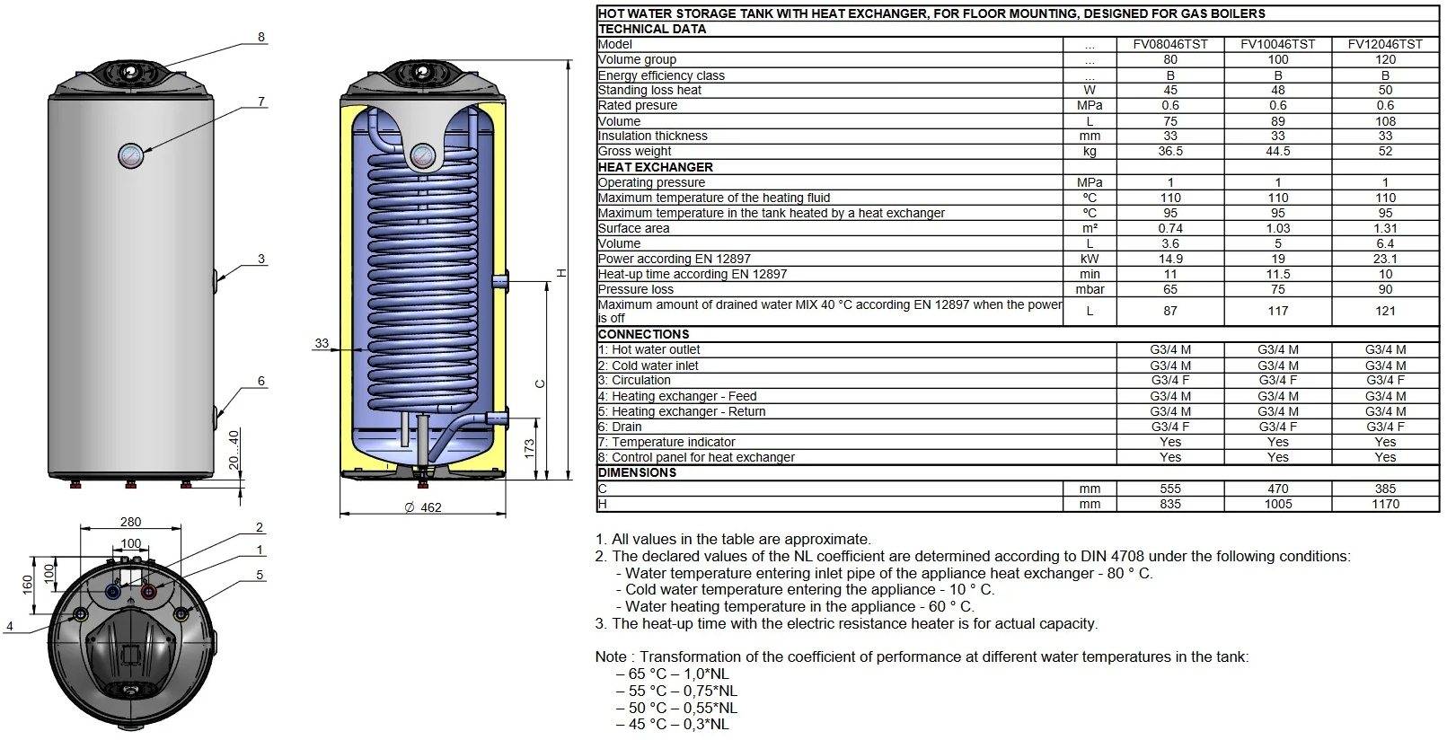 Varmtvandsbeholder - 100 L - Stor spiral - Til varmepumper