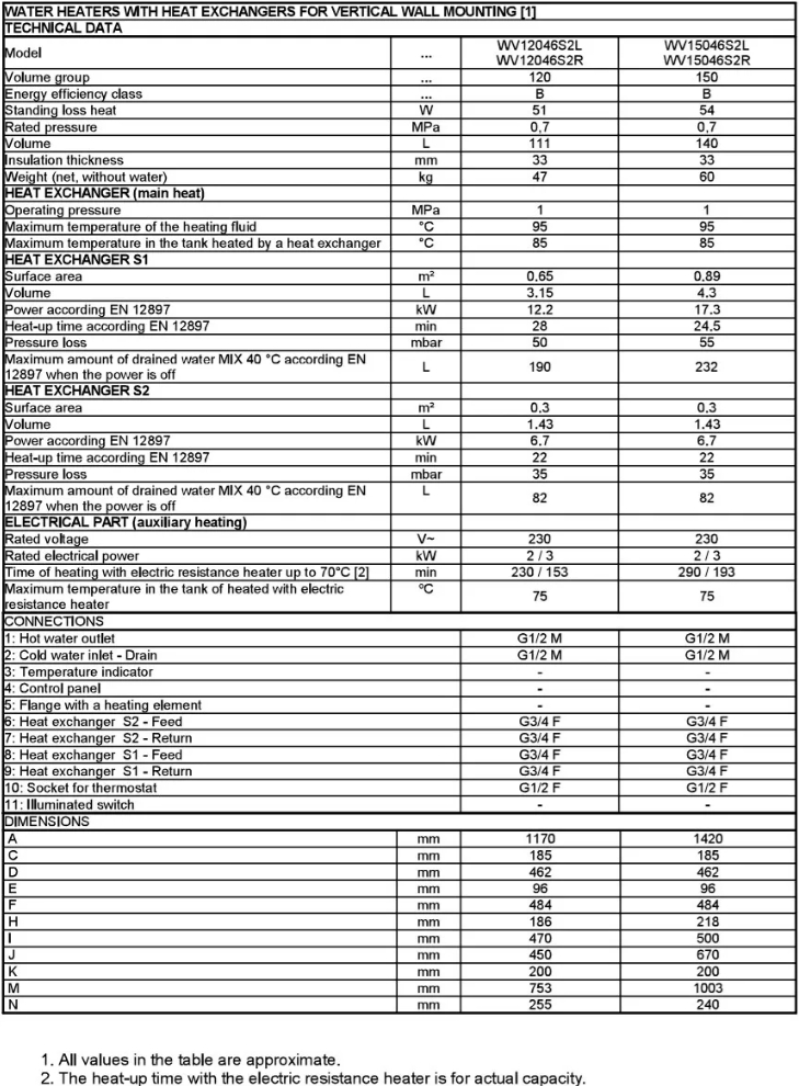 Eldom Solvarmebeholder 150 L - Væghængt med 2 spiraler