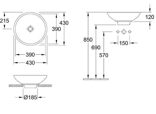 V&B Loop&Friends fritstående håndvask U/overløb - NB der skal være afløb/rist i gulvet når man har vask uden overløb.