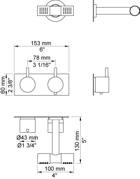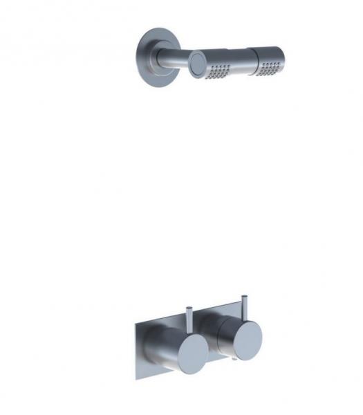 Vola Indbygningstermostat med løs afgangsmuffe Dobbelt hovedbruser, 115 mm Krom 16 3/4''RG/PEX