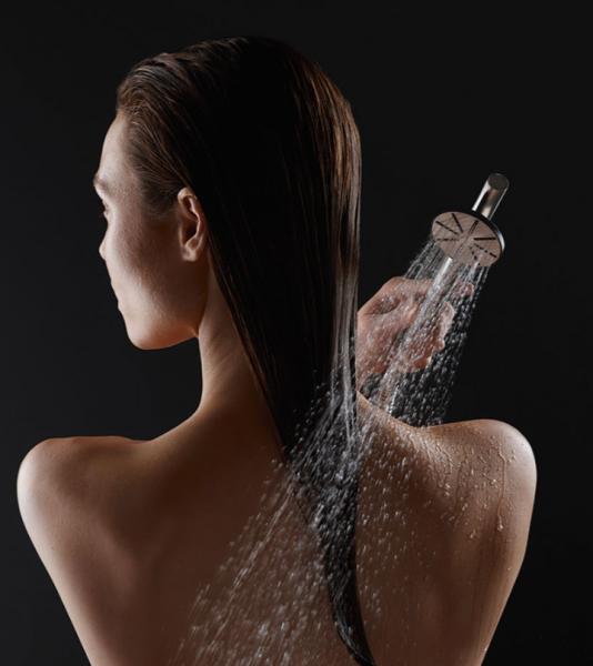 Beskrivelse af Vola håndbruser med slange messing på vej.