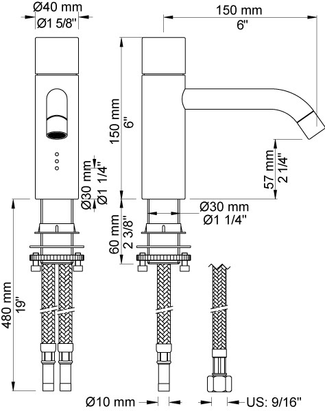 Elektronisk blander med fast tud Udlæg 150 mm Elektronisk uden pind Batteri Krom 16 SPX/240V