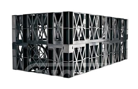 Regnvandskassetterne er fremstillet af 100% sort polypropylen (PP) genbrugsplast,